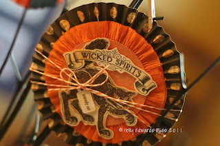 It's really amazing what a little bit of paper can become. Took a little bit of paper, scored, pleated and glued and you have great Halloween rosettes. I bought some black branches and mini-clothespins from Hobby Lobby and I've got a great bit of Halloween decor. I've got to say I love Halloween.